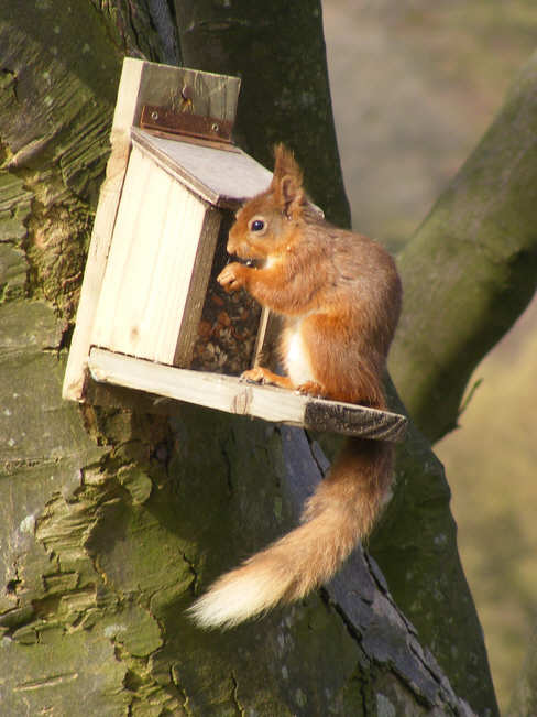 This Red Squirrel was seen on a feeding station close to the National Trust recruiting position at the foot of Buttermere lake.